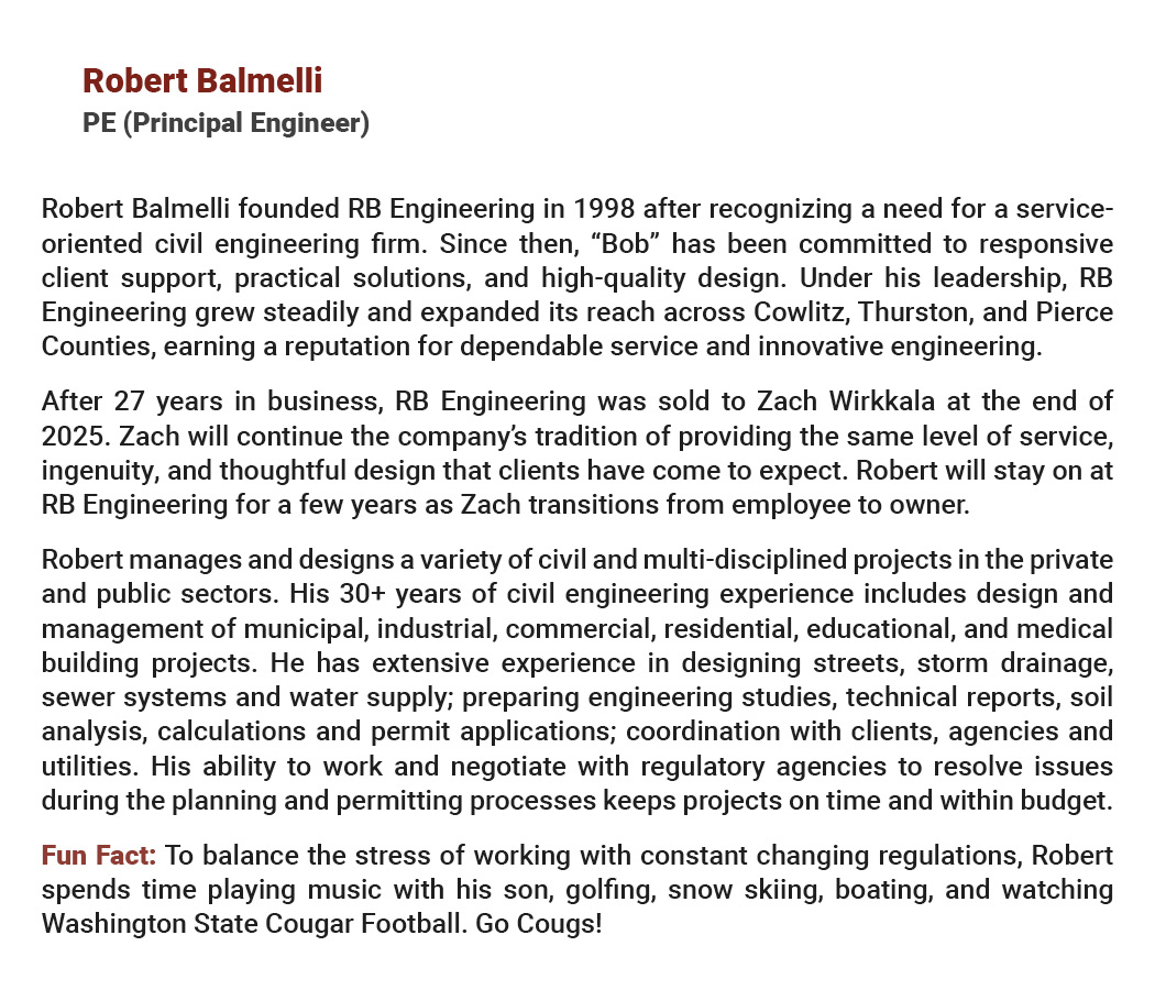 RB Engineering brings over 25 years of professional experience in the design and management of a wide variety of civil engineering projects. The broad background of our staff enables us to provide a wide range of in-house services. We skillfully develop projects from initial concepts to final construction documents. Our experience with developers and agencies ensures that clients will receive service and value.